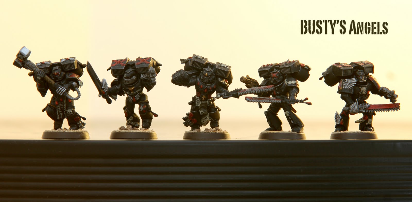 After using my normal terminators with storm bolters and power fists, i realised they weren't much fun to play. I took their arms off and used the spare arms from the assault box set to make a ten man squad, 5 lightning claws and 5 thunder hammers. I prefer how they play and look but moving them is a pain as at first i thought i could put all of them in my land raider. Now i no i can only take 6, iv been taking a 5 man squad with a sanguinary priest and HQ which can be very nasty. Its been great learning the game i really feel like im getting the hang of it now.
